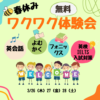| 持ち物 | 筆記用具、英語ノート、お弁当 ※おやつはこちらで用意します |